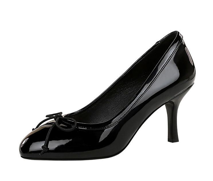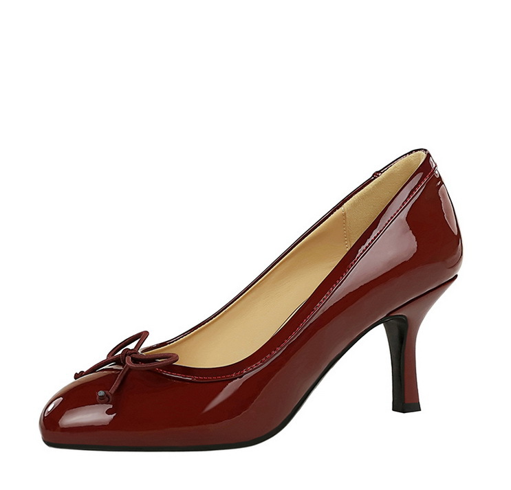 Bow-tie Round-toe High Heels Womens Low-cut Pumps