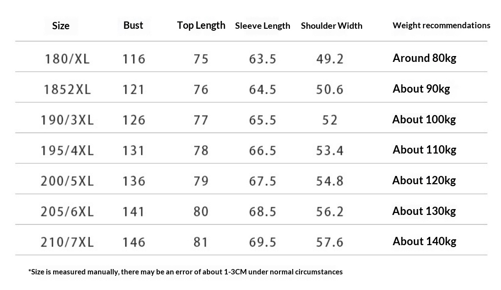 Sizes: XL, XXL, XXXL, 4XL, 5XL, 6XL, 7XL