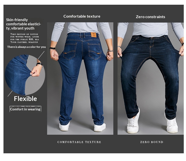 High-elasticity Loose-fit Straight-leg Plus-size Jeans For Men