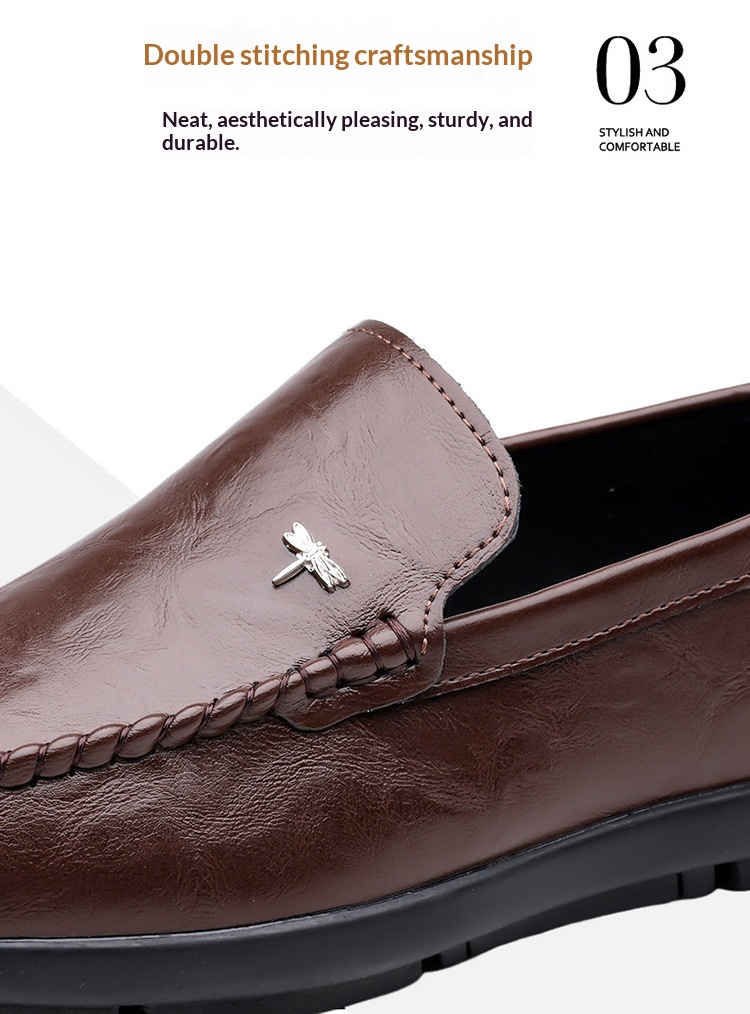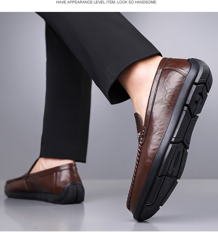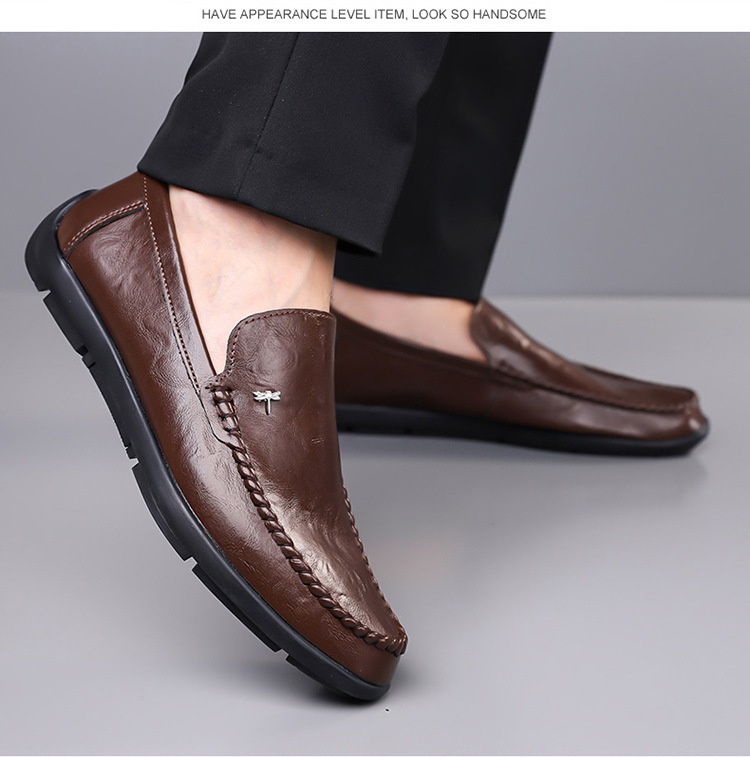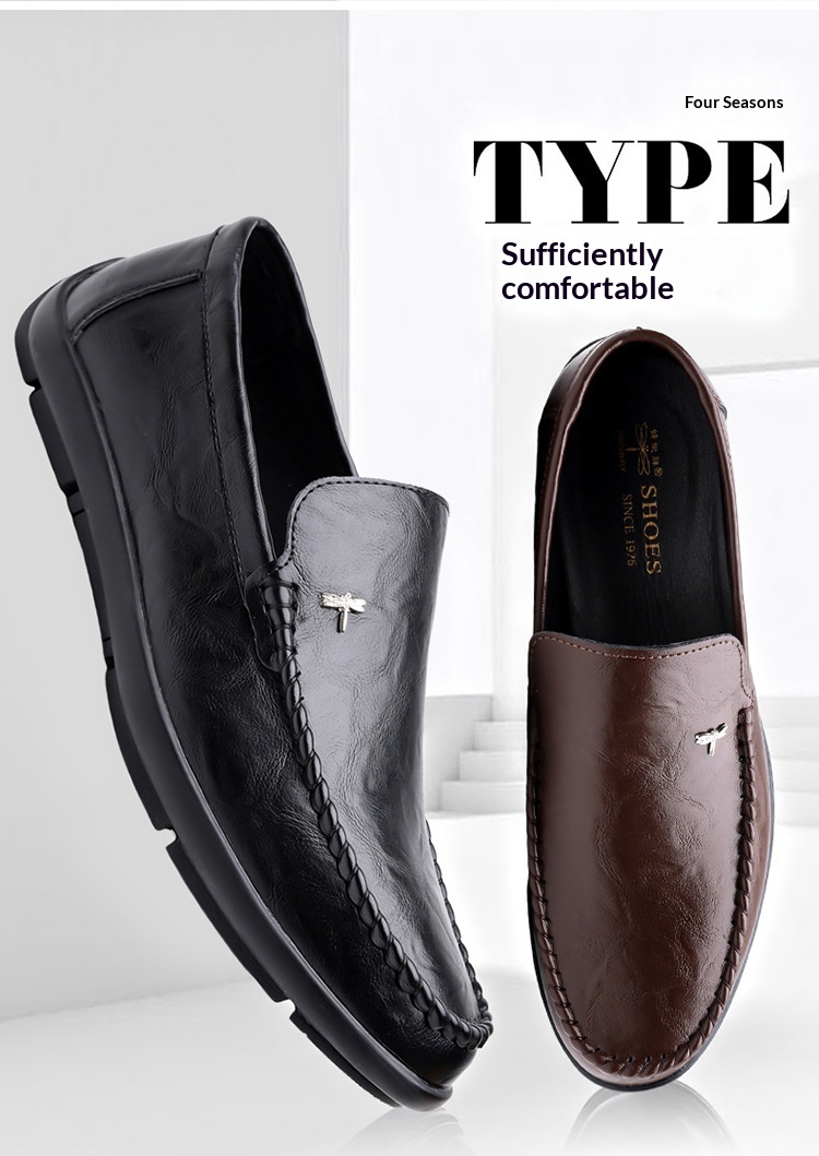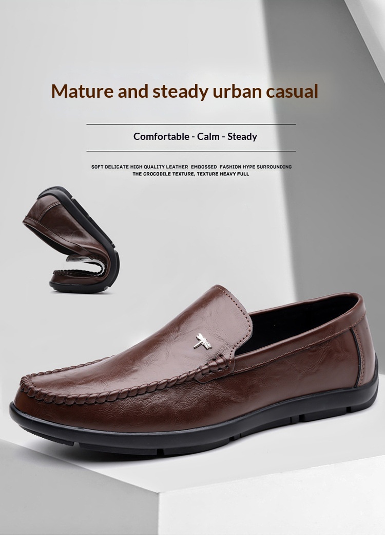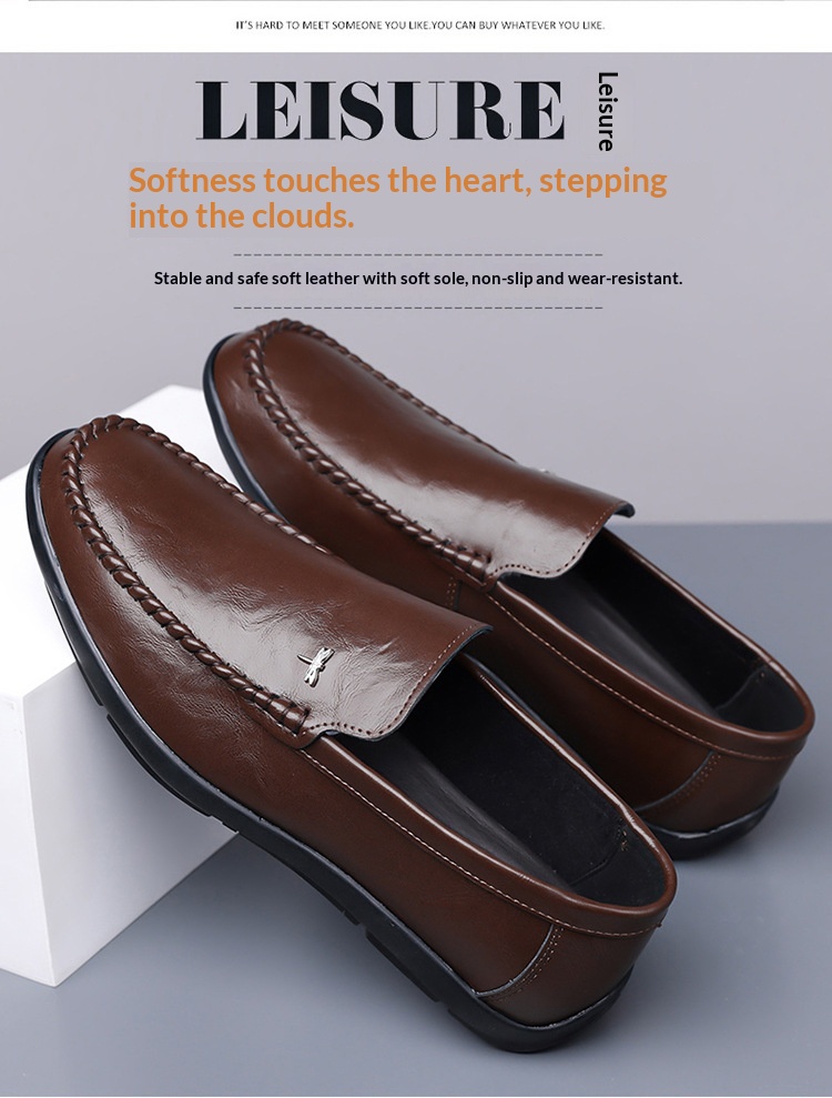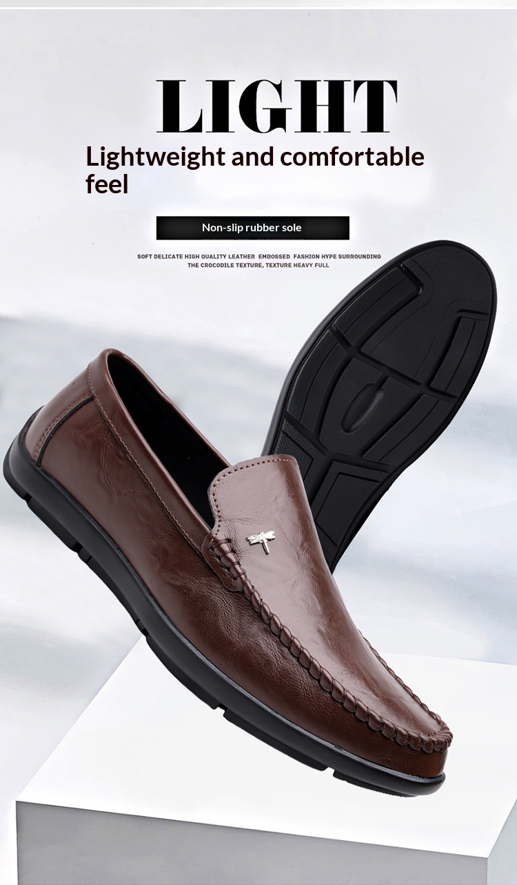 Mens Casual Breathable Leather Slip-on Shoes With A Soft Sole