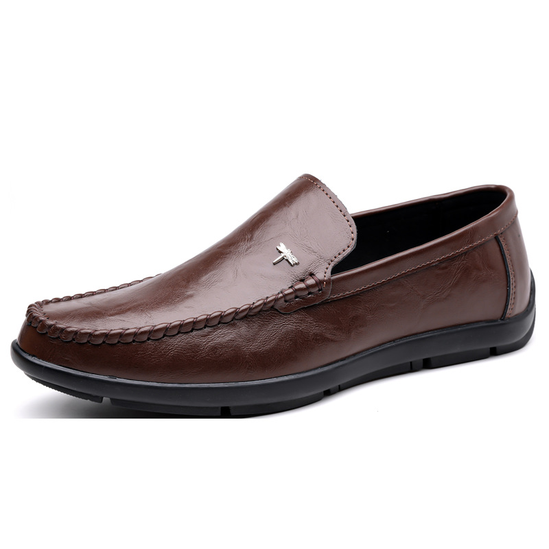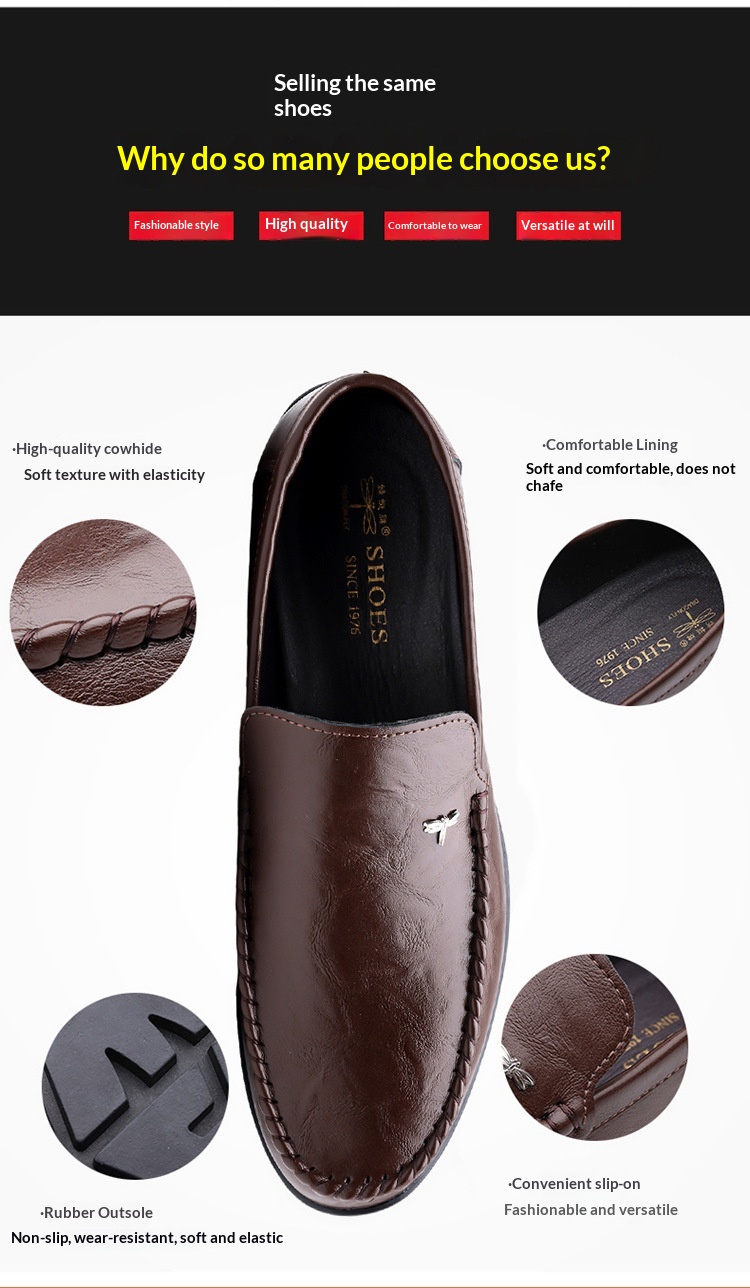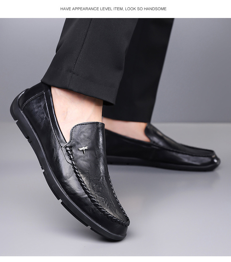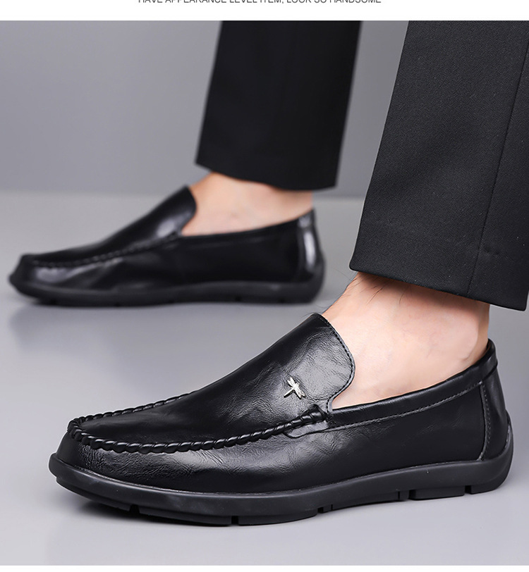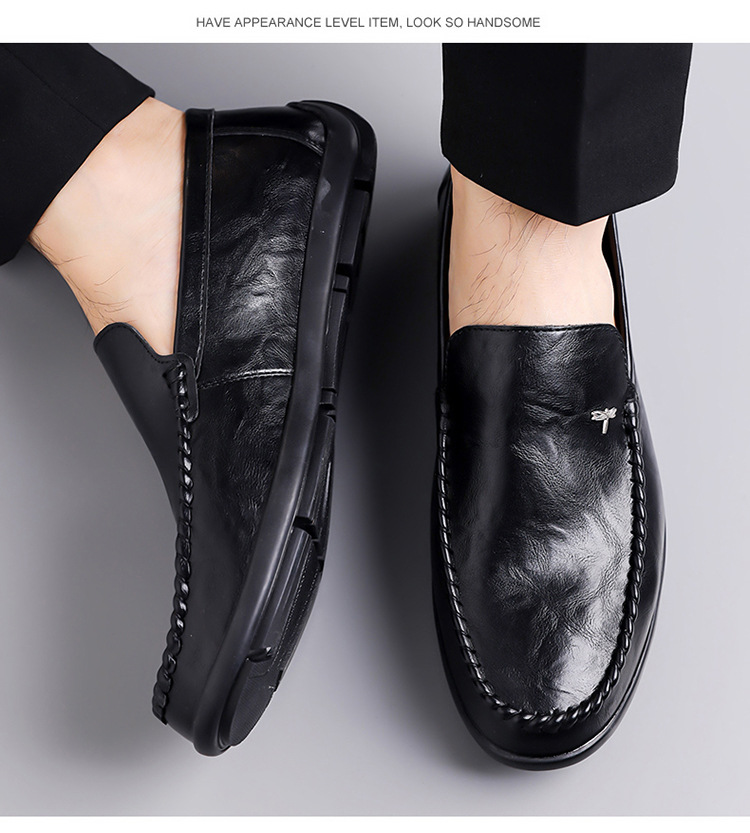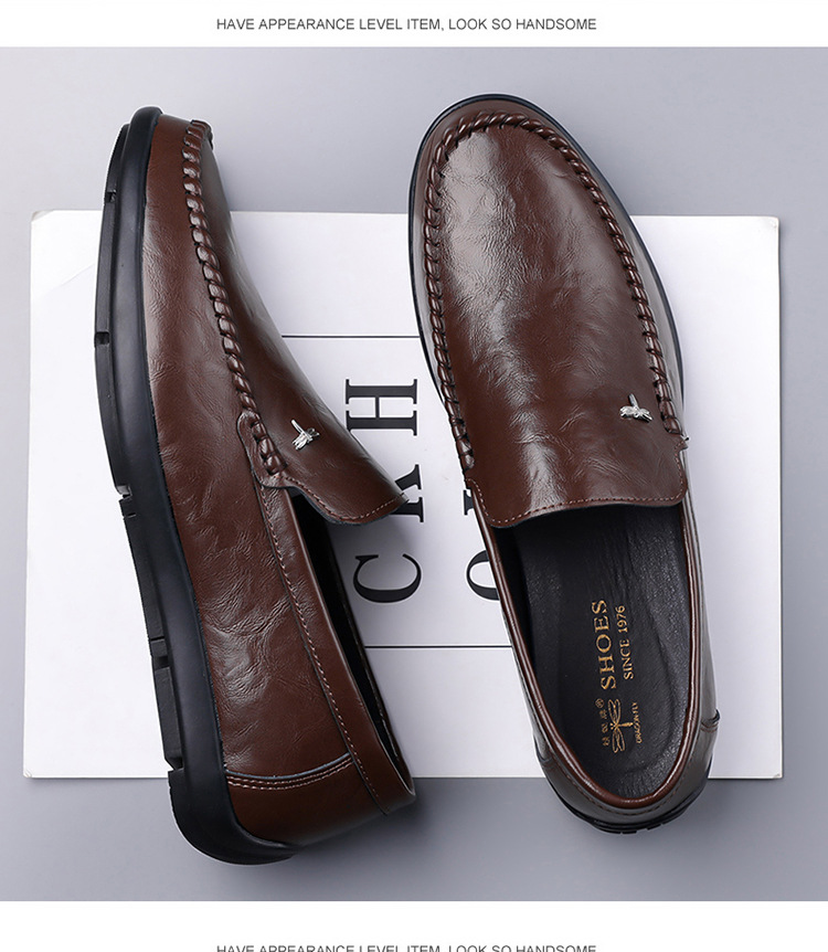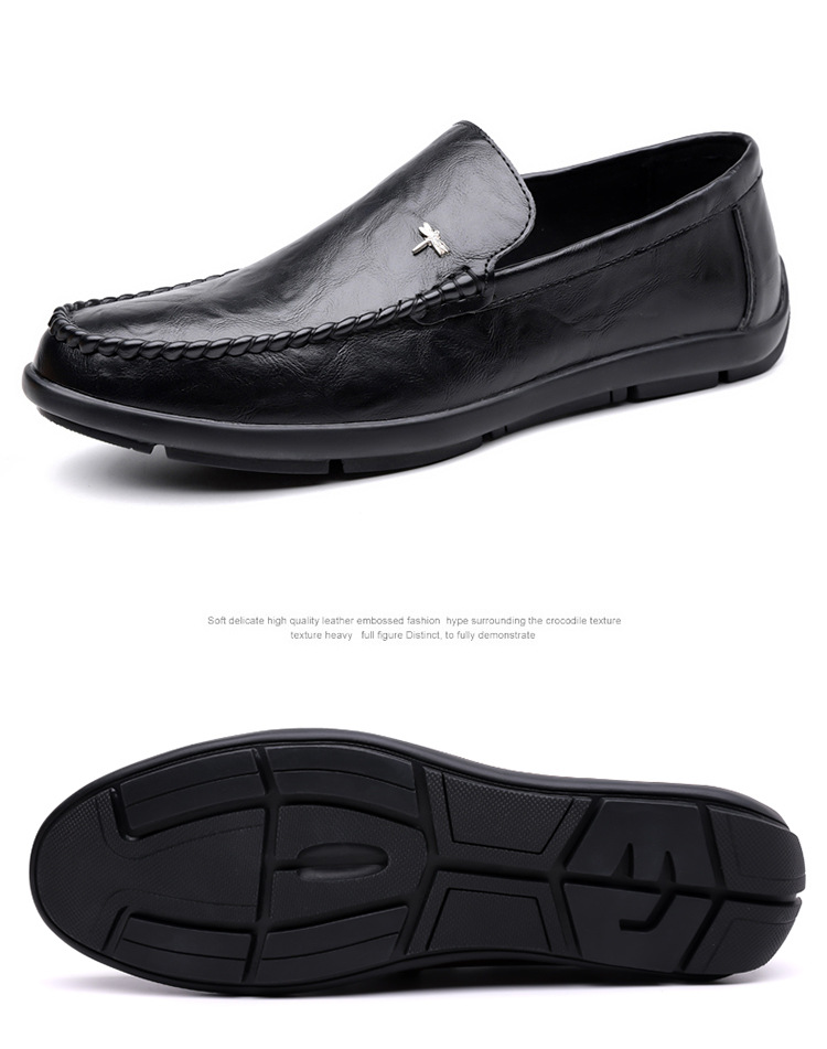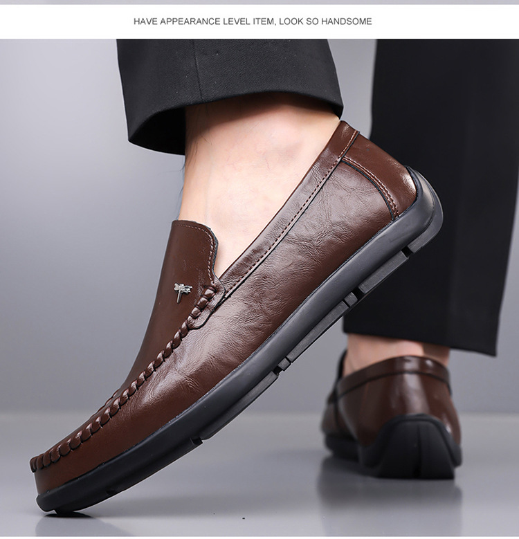 Mens Casual Breathable Leather Slip-on Shoes With A Soft Sole