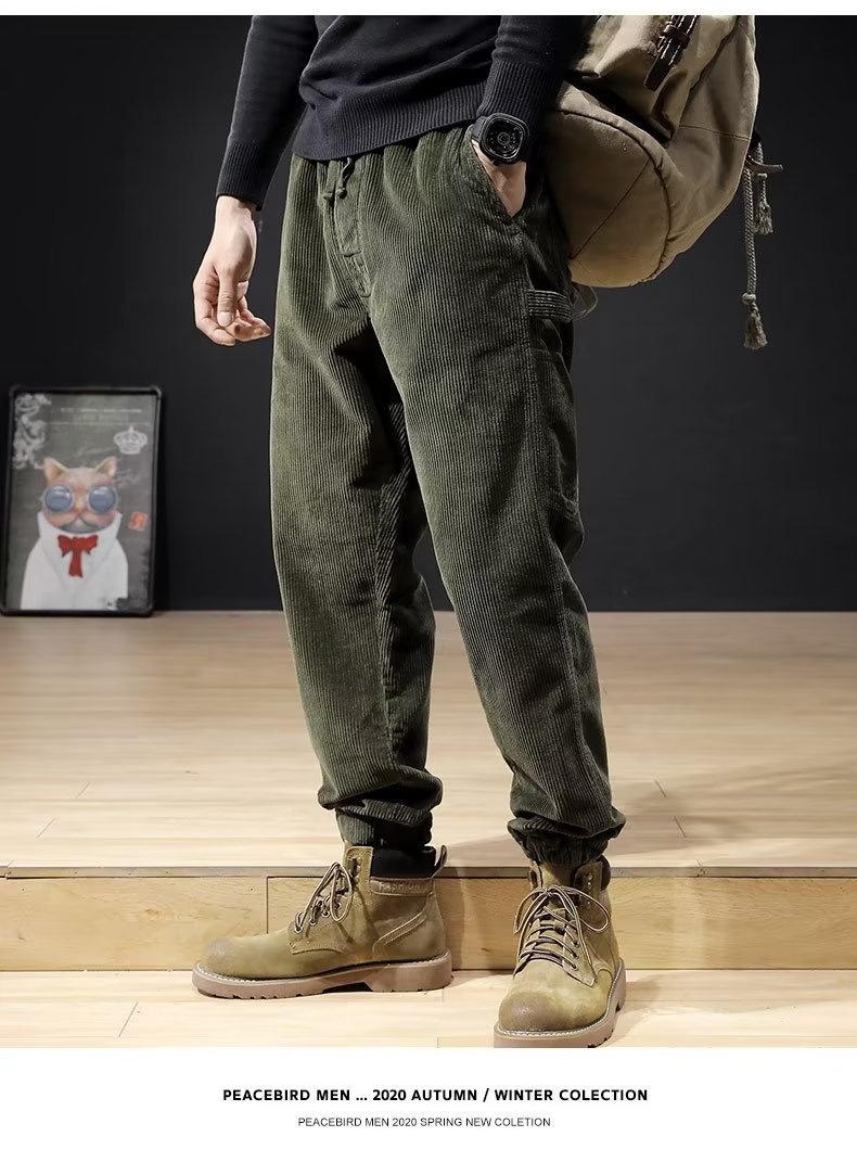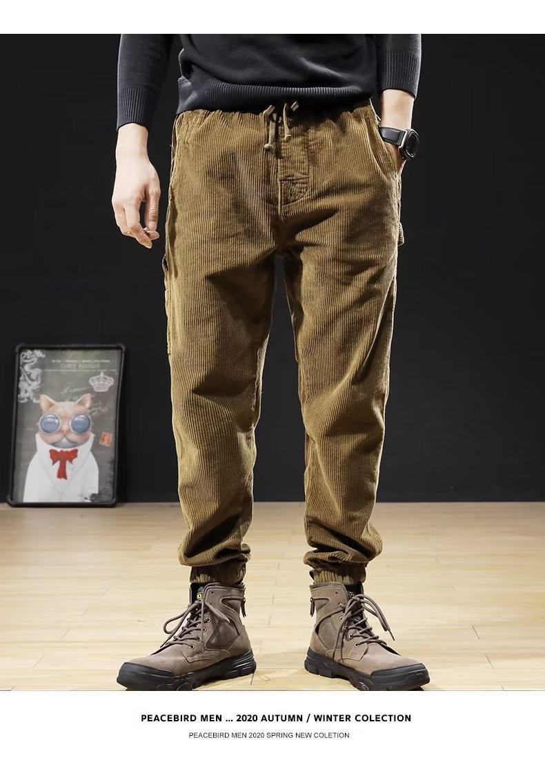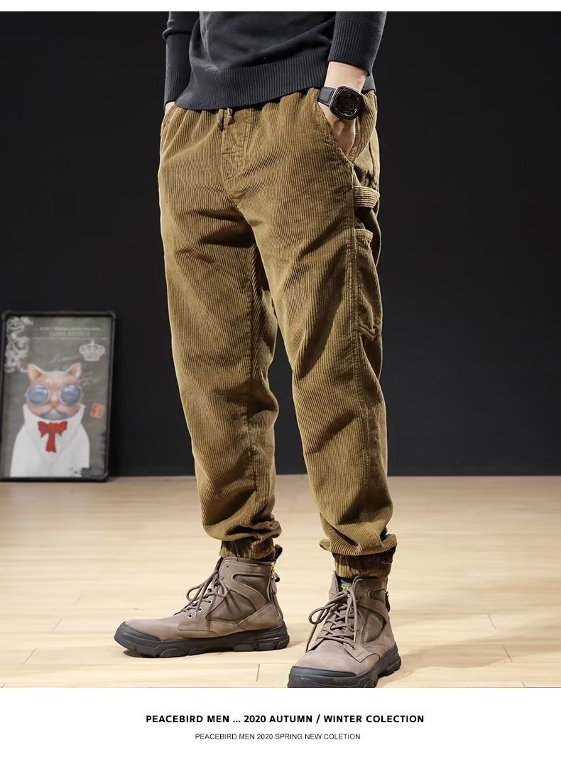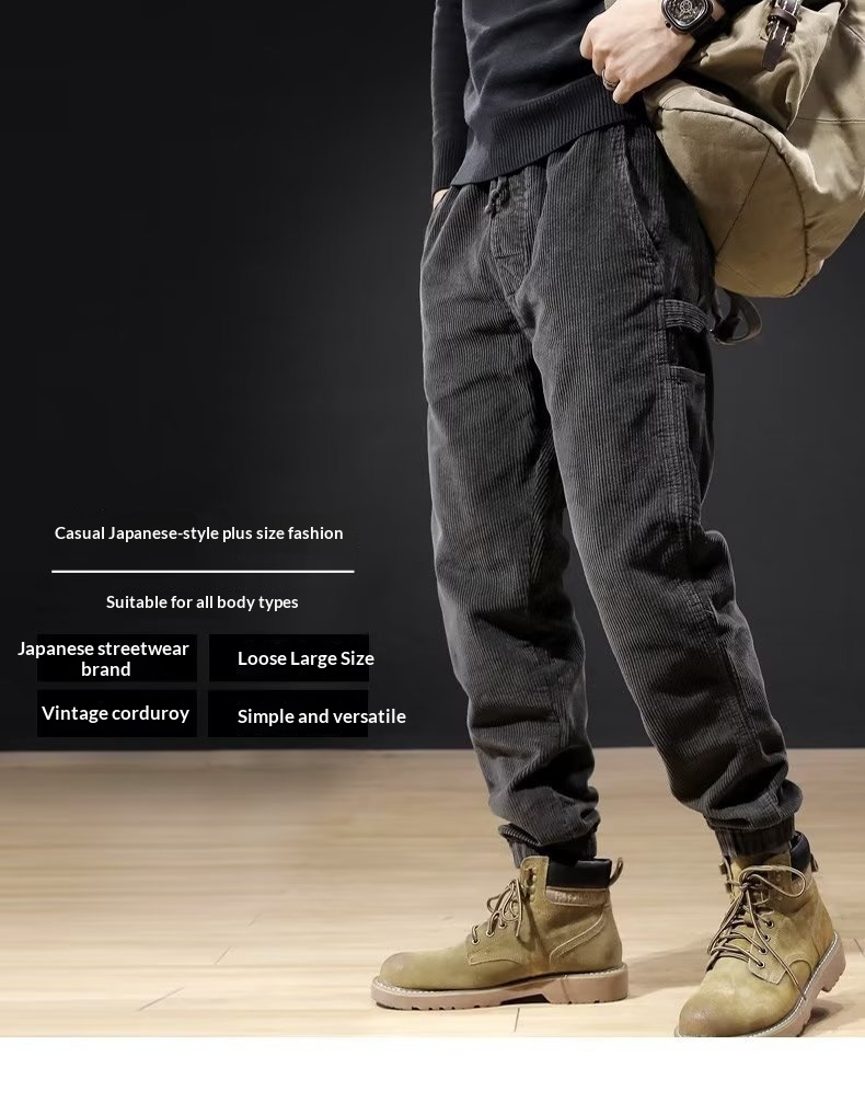 Mens Casual Loose-fitting Plus-size Corduroy Trousers