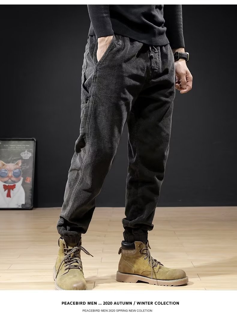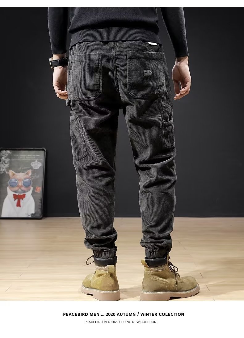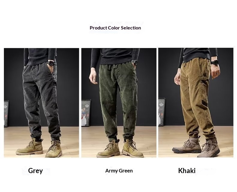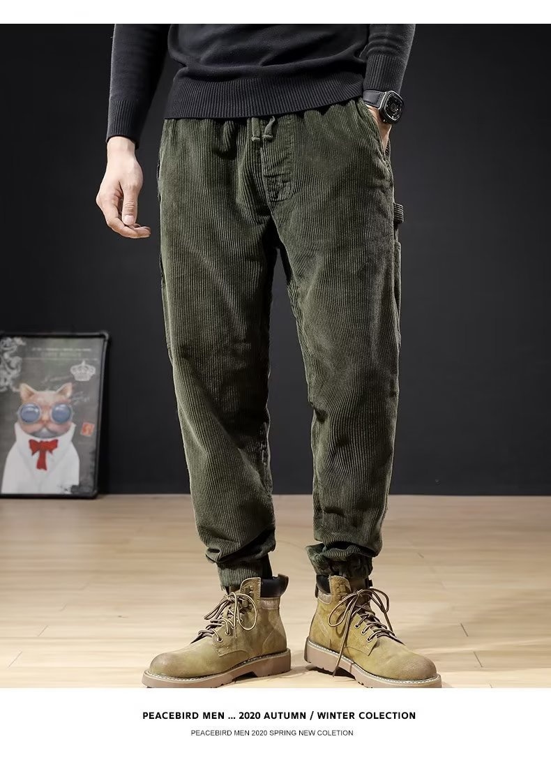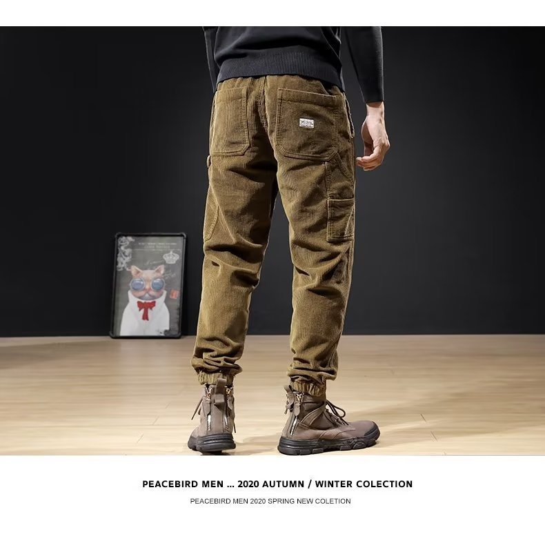 Mens Casual Loose-fitting Plus-size Corduroy Trousers