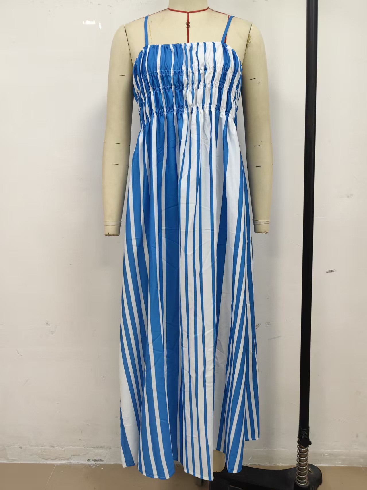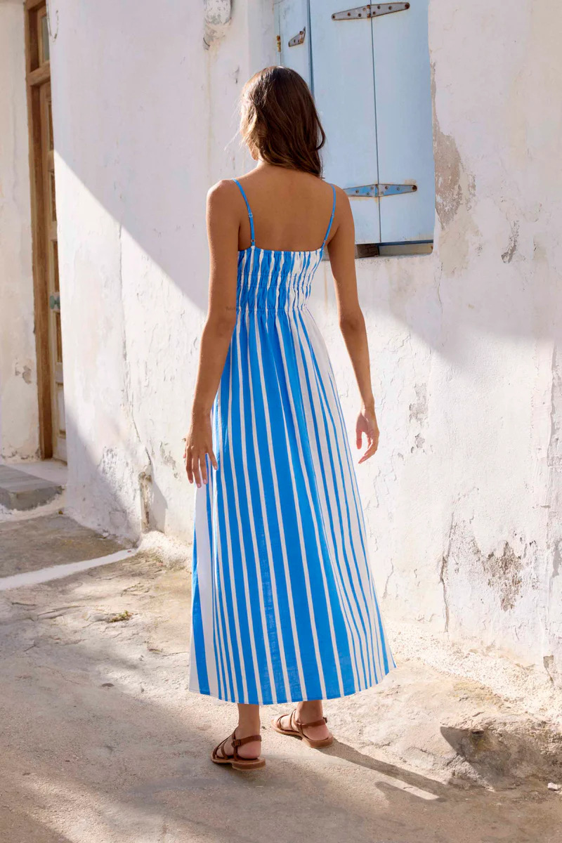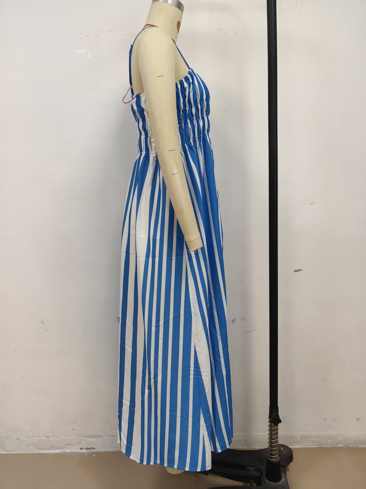 One Collar Striped Mid Waist Printed Mid Length Dress