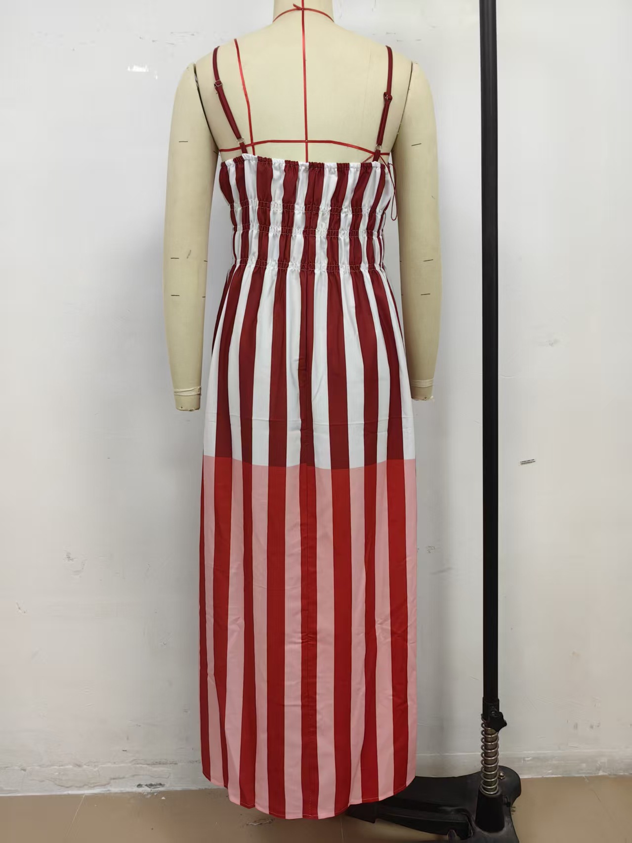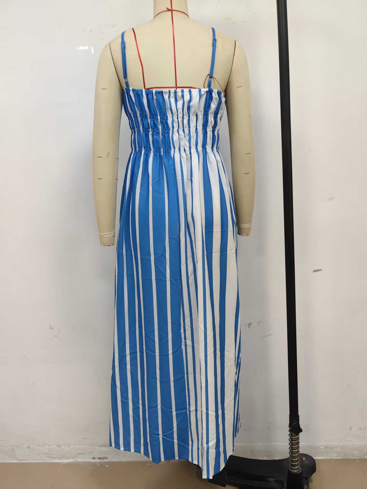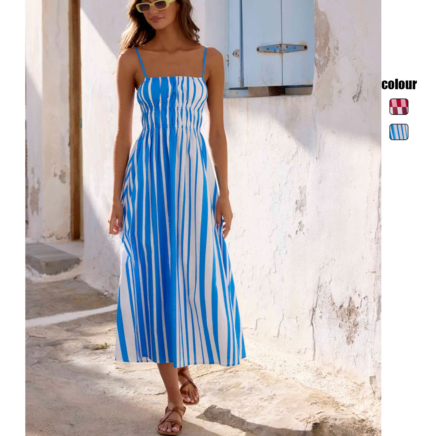 One Collar Striped Mid Waist Printed Mid Length Dress