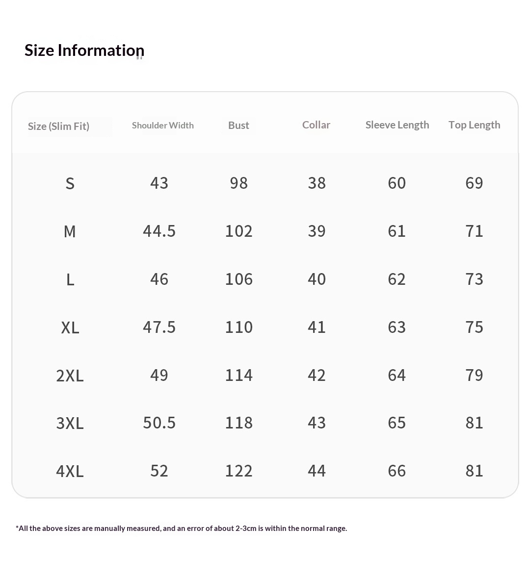 Sizes: S, M, L, XL, XXL, XXXL, XXXXL