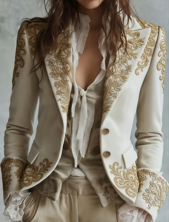 Velvet Pocket Suit With Printed Lapel And Flared Sleeves, Long-sleeved Blazer.