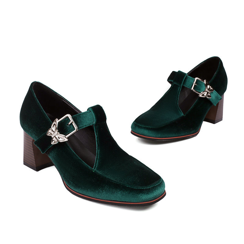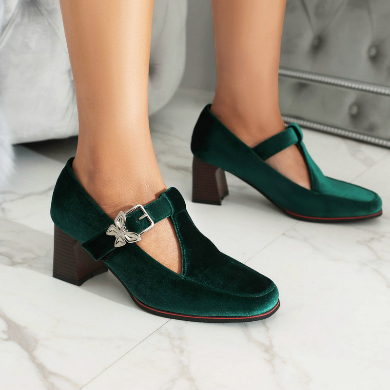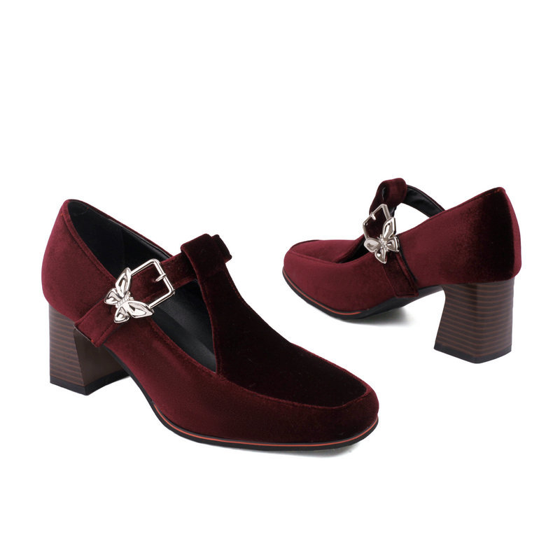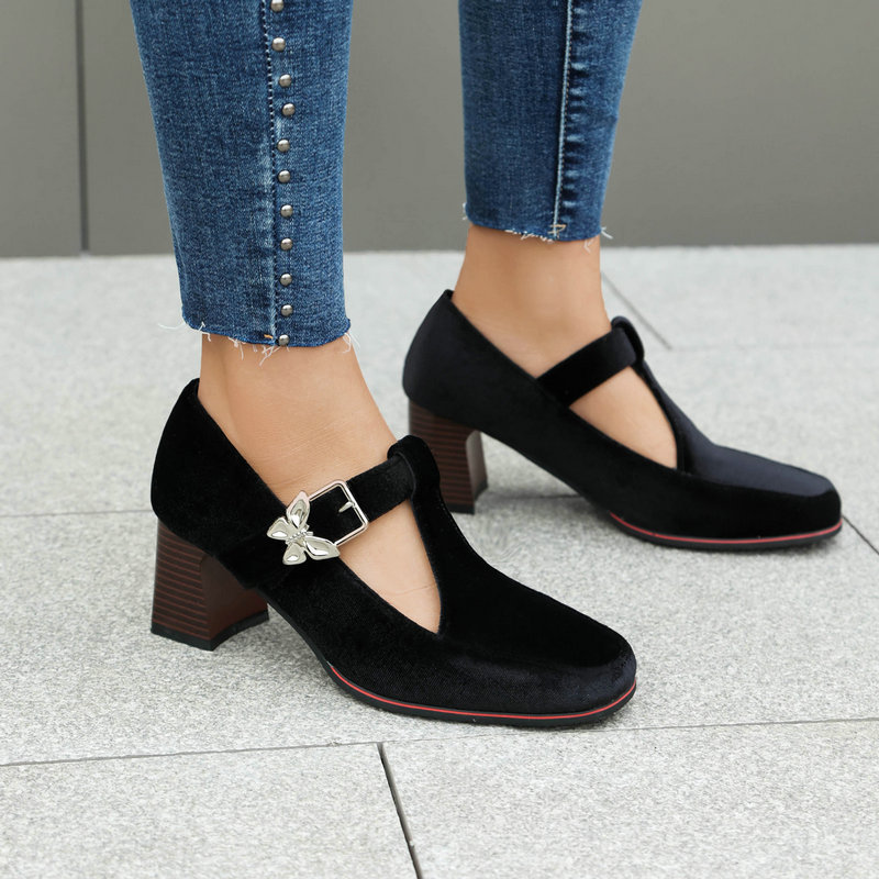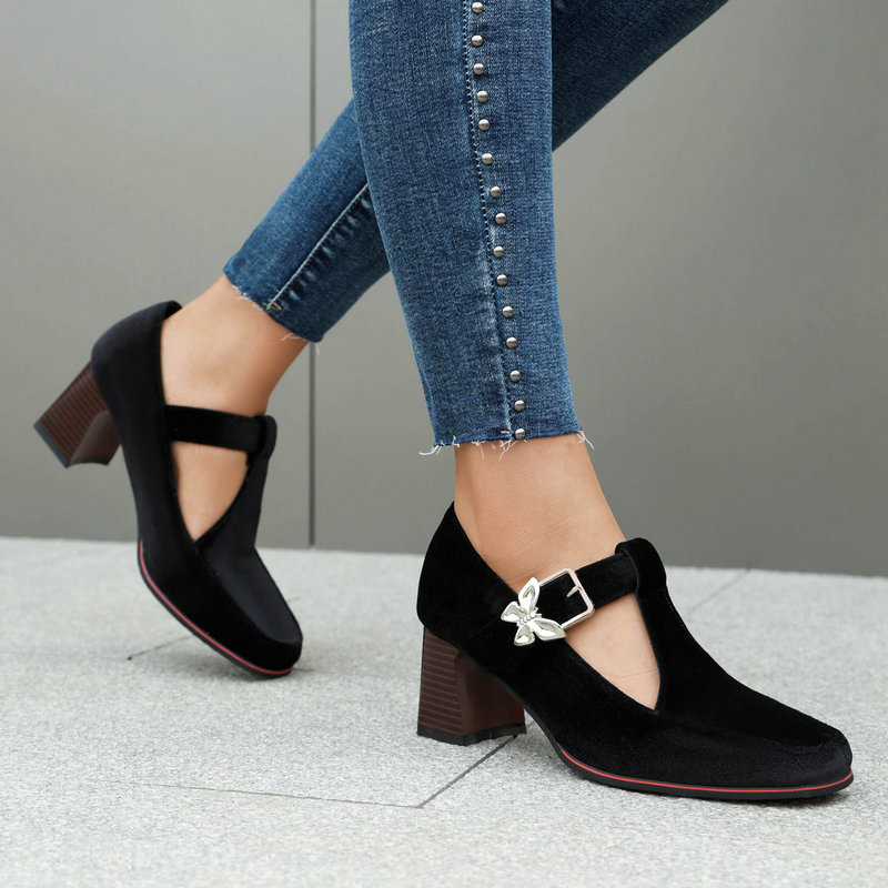 Womens Fashionable Chunky-heel High Heels With Buckles
