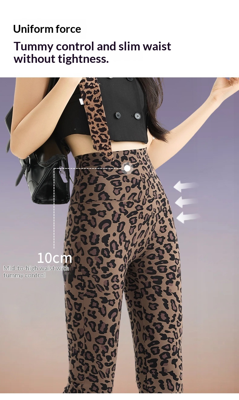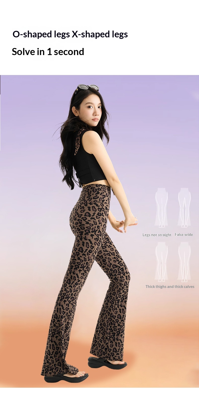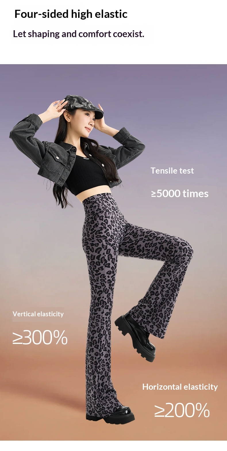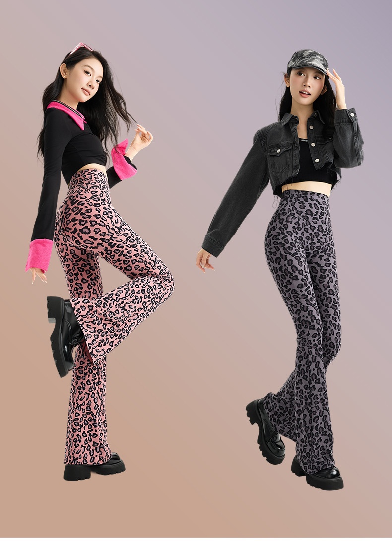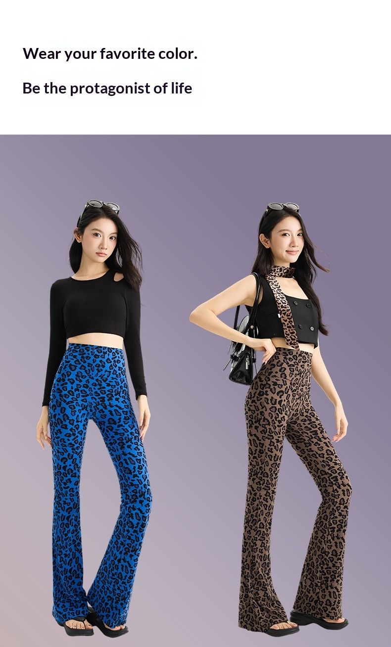 Womens Leopard-print Bootcut Pants With A High Waist For Spring And Autumn