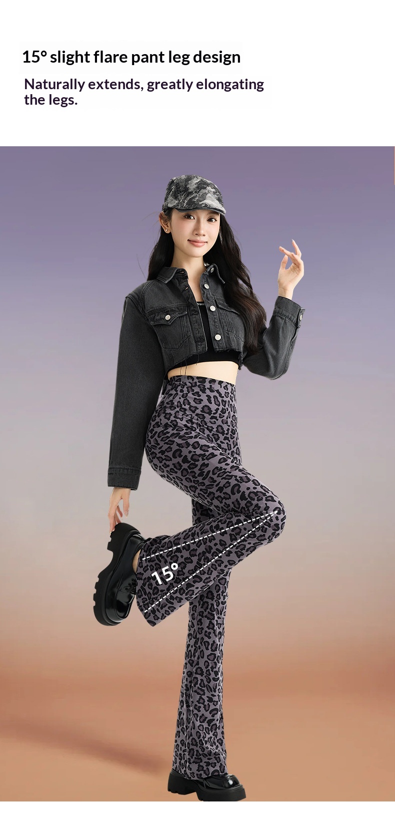 Color: Leopard Print Coffee Flared Pants, Leopard Print Gray Flared Pants, Leopard Print Pink Flared Pants, Leopard Print Blue Flared Pants