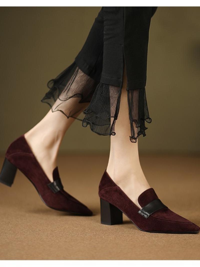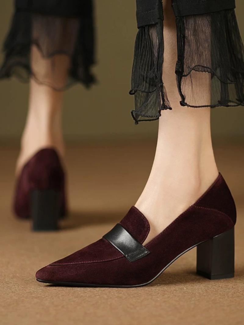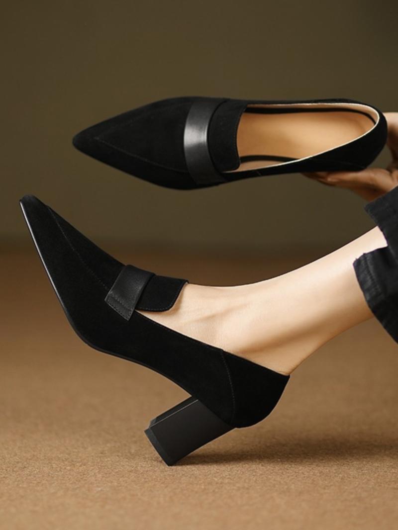 Womens Pointed-toe Loafers Chunky-heel High Heels Work Shoes
