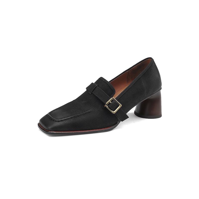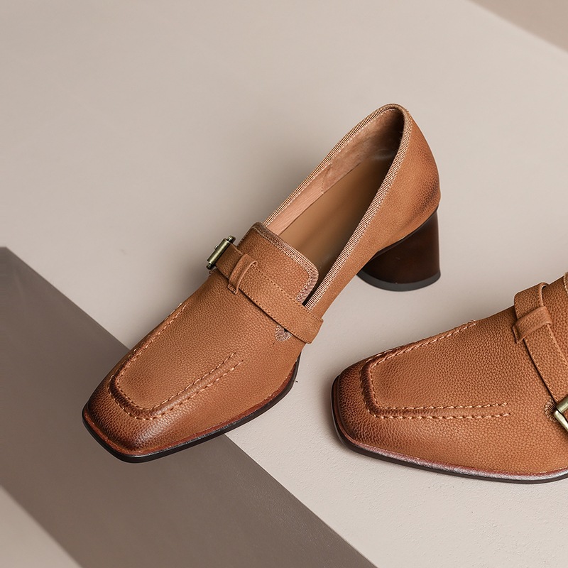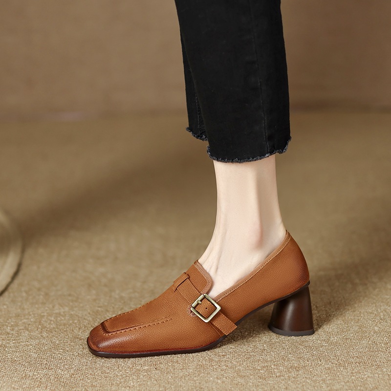 Womens Retro Brown Commuter British Style Leather Shoes With Chunky Heels