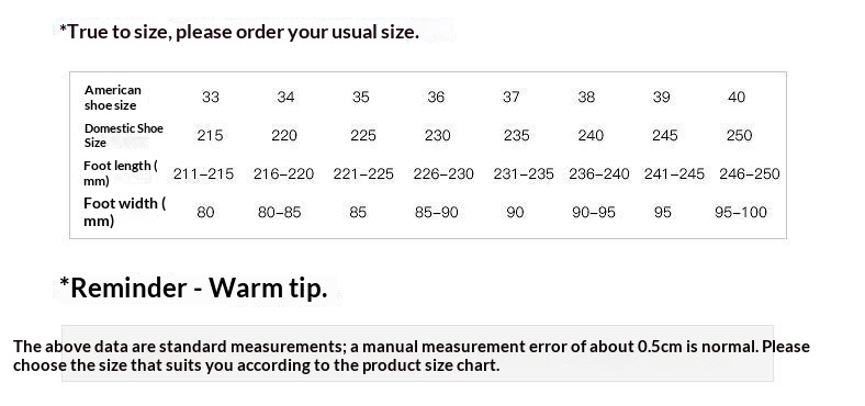 Sizes: 34, 35, 36, 37, 38, 39; Custom orders for special sizes such as 32, 33, 41, 40, 42, 43, 44, 45, 46, 47, 48 are non-returnable and non-exchangeable